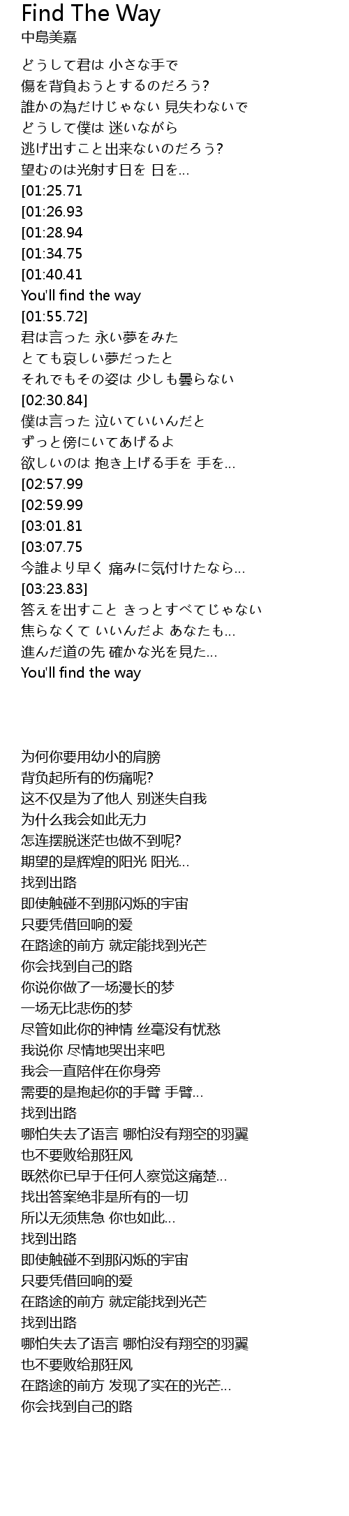 | [04:23.22][02:59.99] | Find the way |