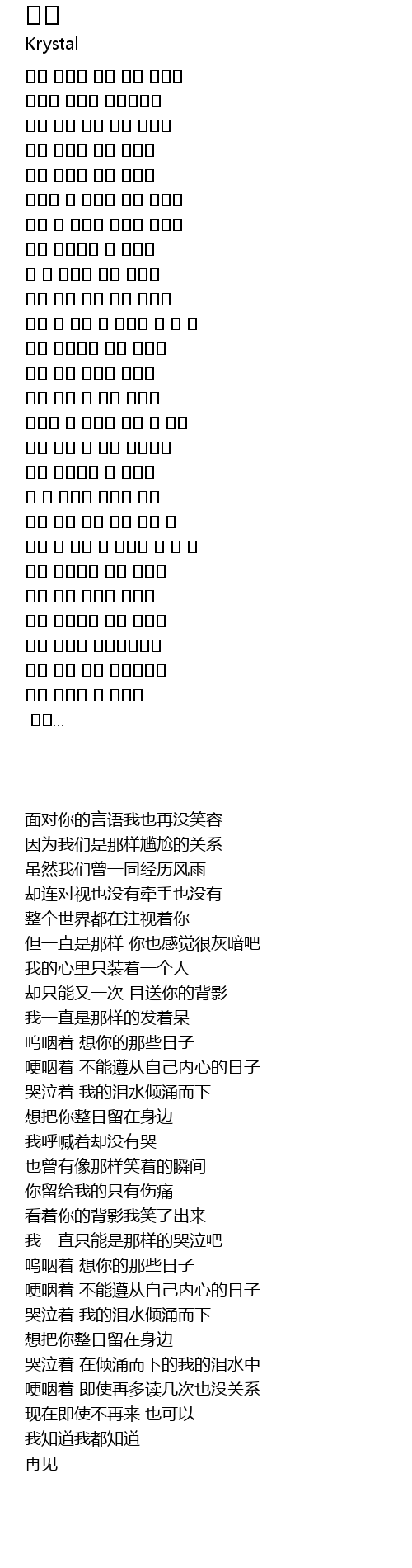 哭泣着 在倾涌而下的我的泪水中 |