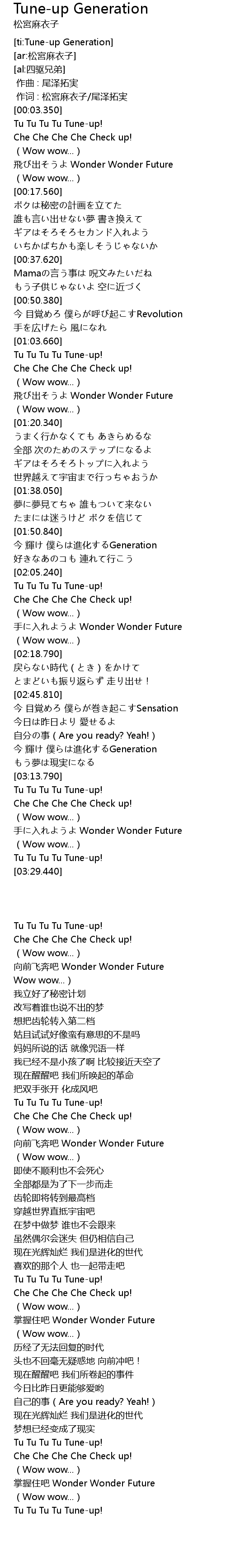 | [03:14.38] | Tu Tu Tu Tu Tune-up! |