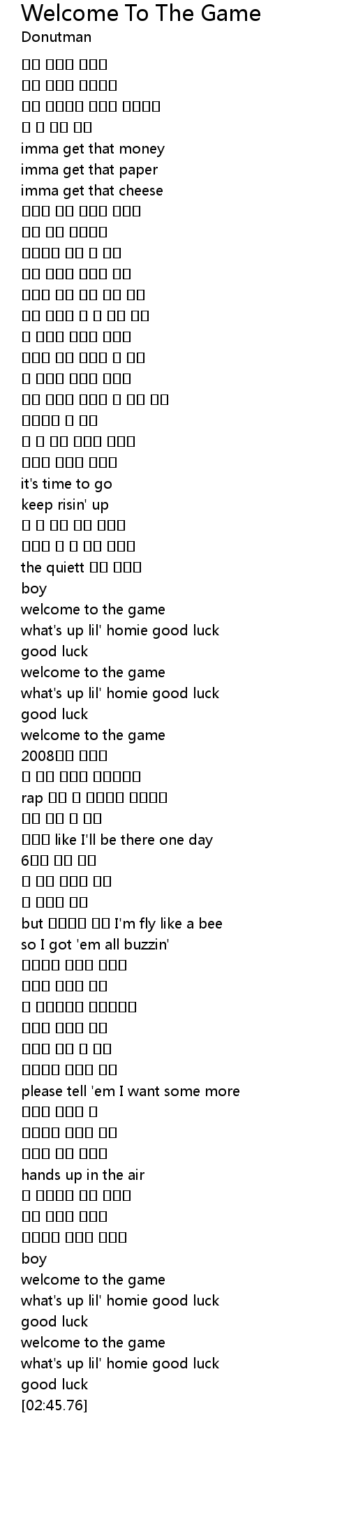 | [02:39.61] | welcome to the game |