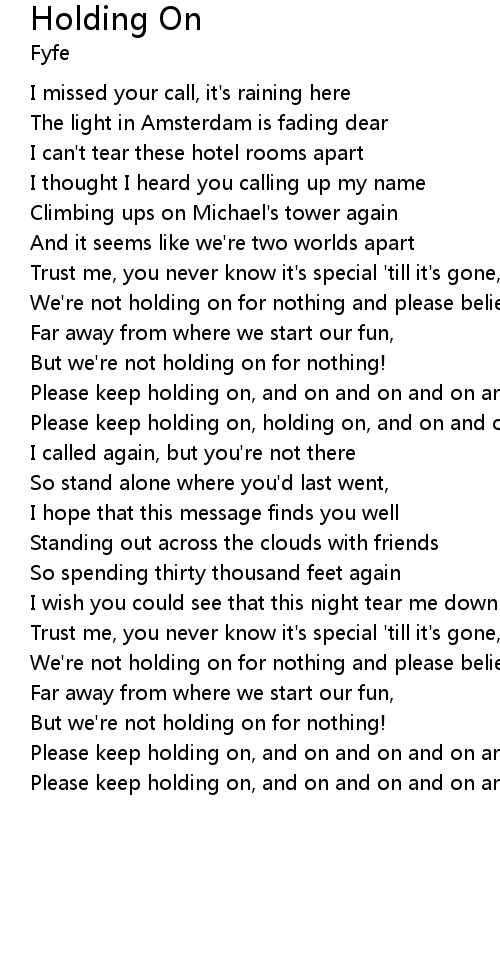 Please keep holding on, and on and on and on and on and on |