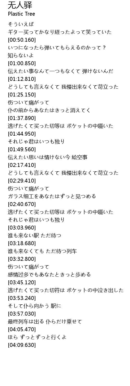 | [03:57.270] | 最终列车は出る 仆らだけ乗せて |