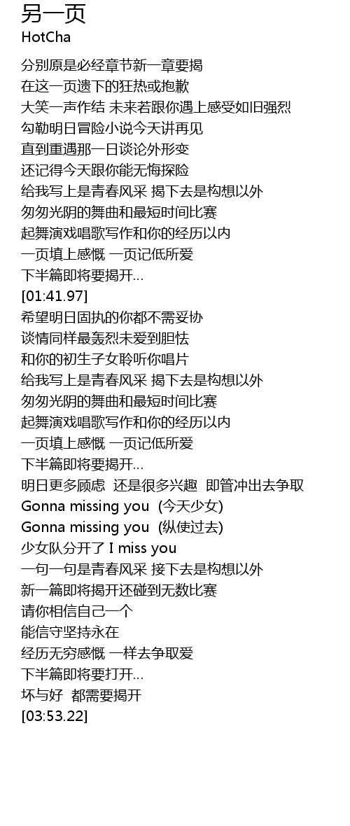 | [02:53.07] | Gonna missing you (今天少女) |