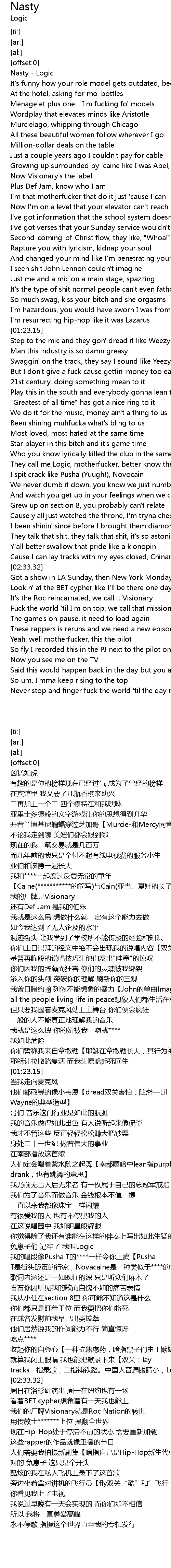 | [02:06.48] | 兔崽子们 记牢了 我叫Logic |