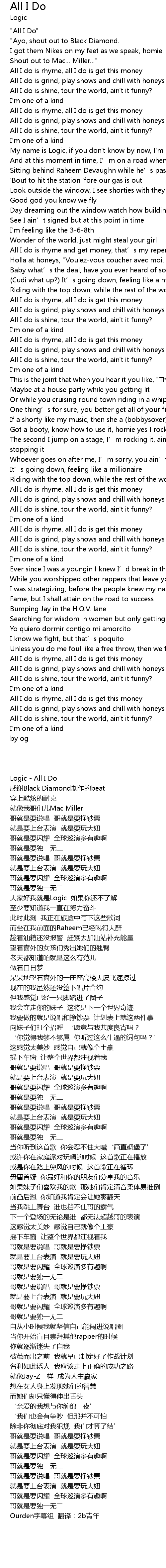 | [00:00.00] | Logic - All I Do |
