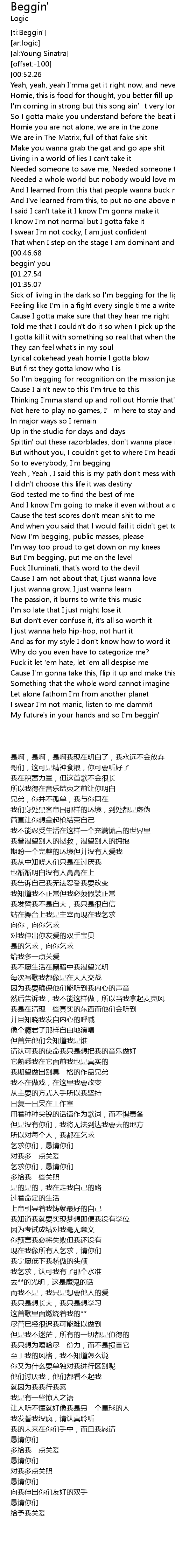 | [01:52.44] | But I' m begging, put me on the level |