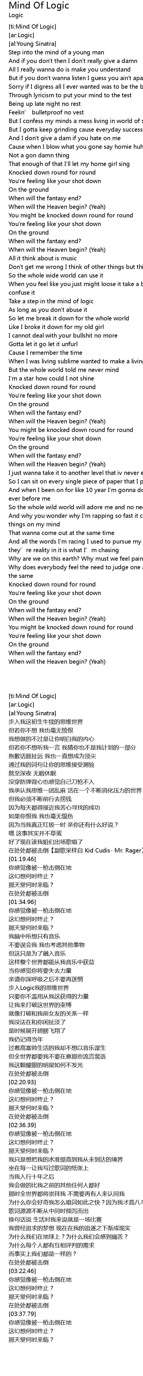 | [03:01.37] | And why you wonder why I' m rapping so fast it cause I gotta lot of things on my mind |
