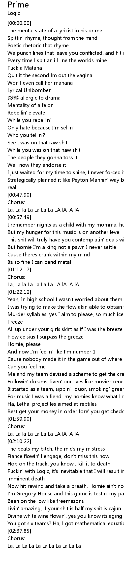 | [00:10.76] | The mental state of a lyricist in his prime |