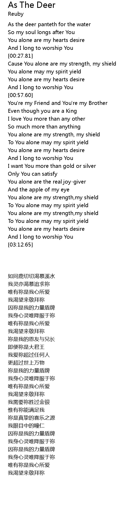 As the deer panteth for the water |