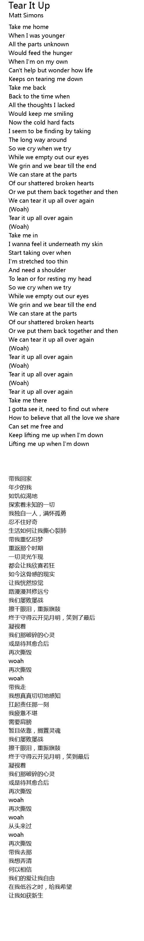 Tear it up all over again |