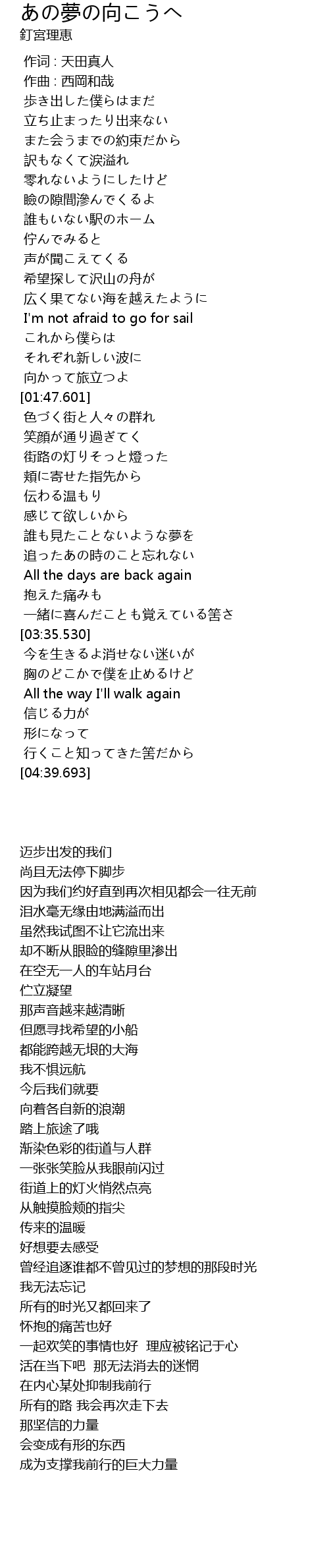 | [02:47.045] | 曾经追逐谁都不曾见过的梦想的那段时光 |