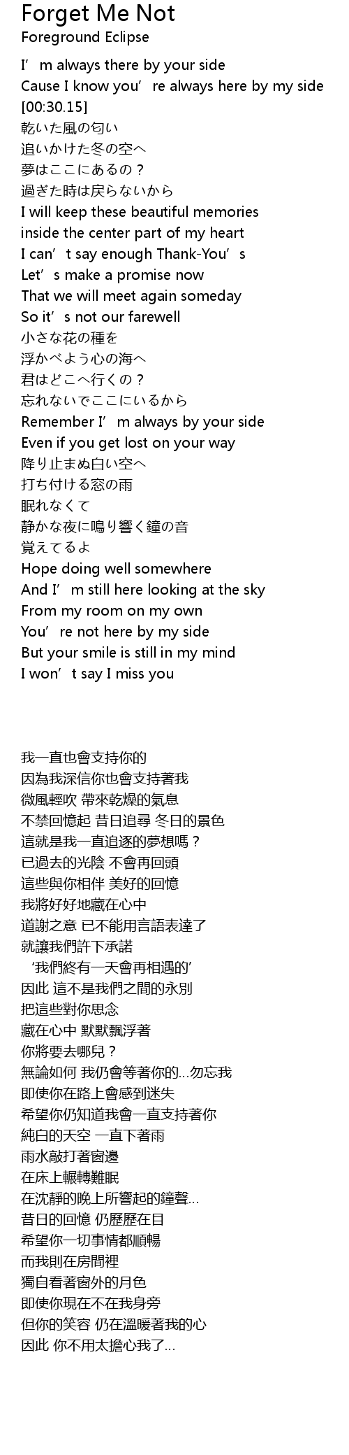 | [02:35.34] | 無論如何 我仍會等著你的…勿忘我 |