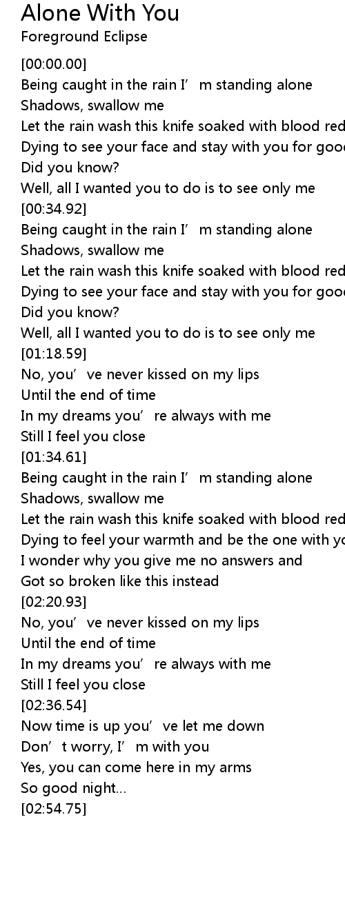 | [00:47.50] | Being caught in the rain I' m standing alone |