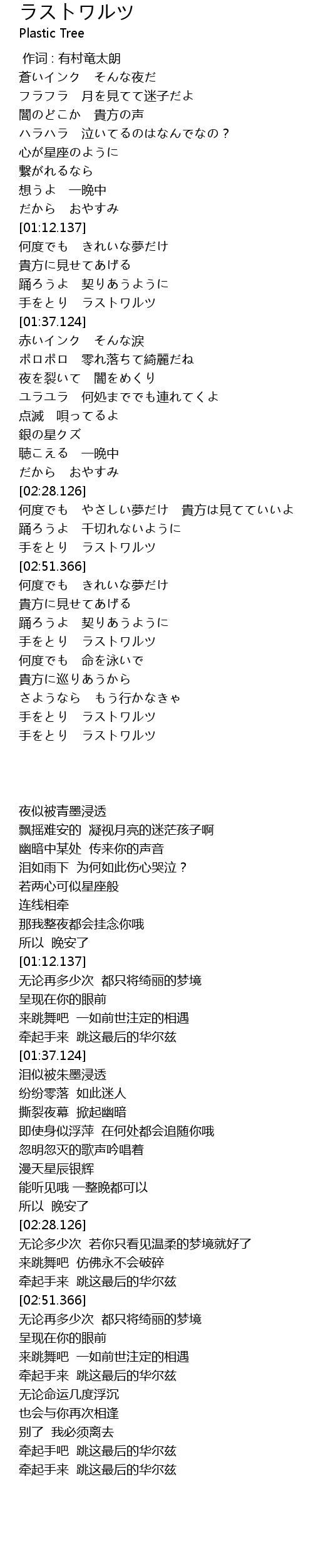 | [03:58.367] | 牵起手吧 跳这最后的华尔兹 |