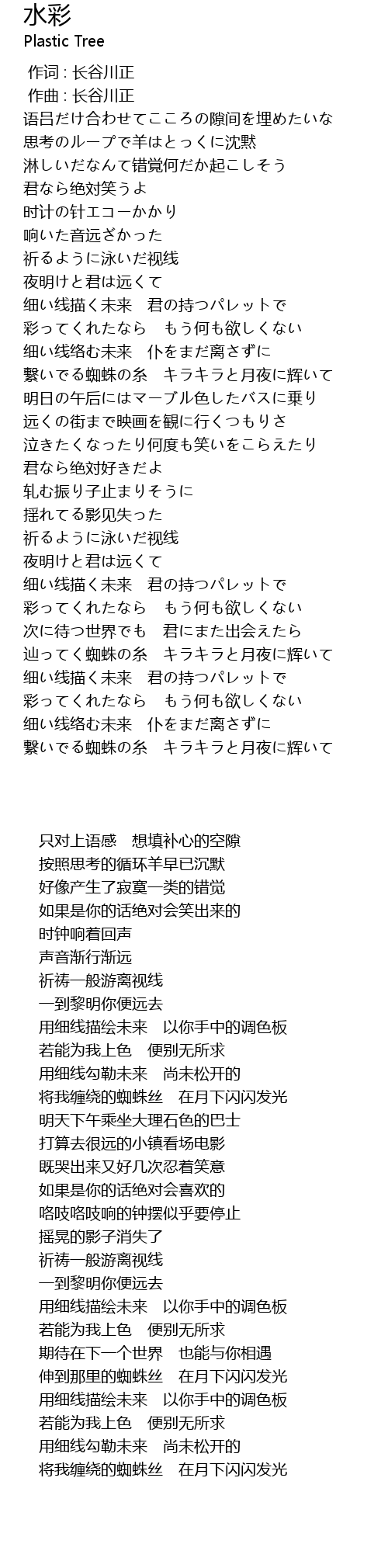 | [03:37.46] | 繋いでる蜘蛛の糸 キラキラと月夜に辉いて |
