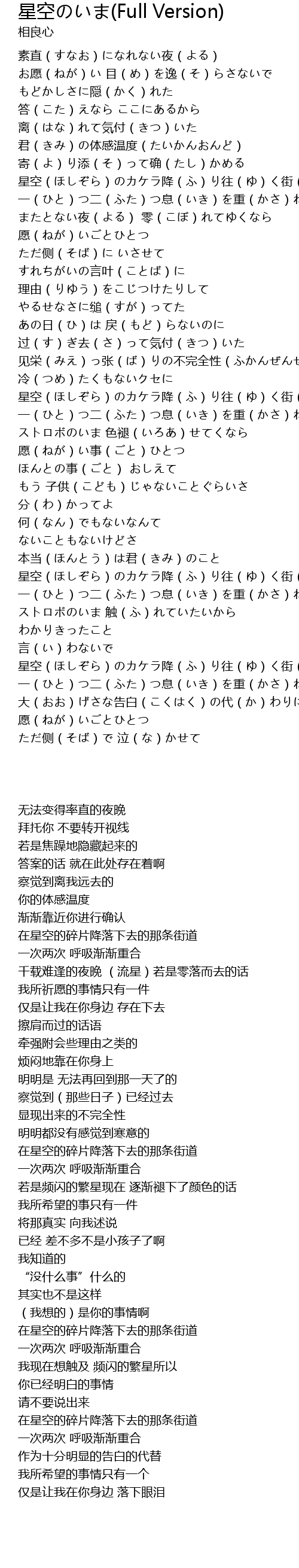 | [02:45.670] | 星空(ほしぞら)のカケラ降(ふ)り往(ゆ)く街(まち)で |
