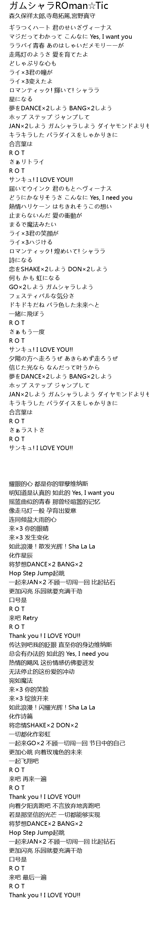 | [00:57.50] | ロマンティック! 輝いて! シャララ |