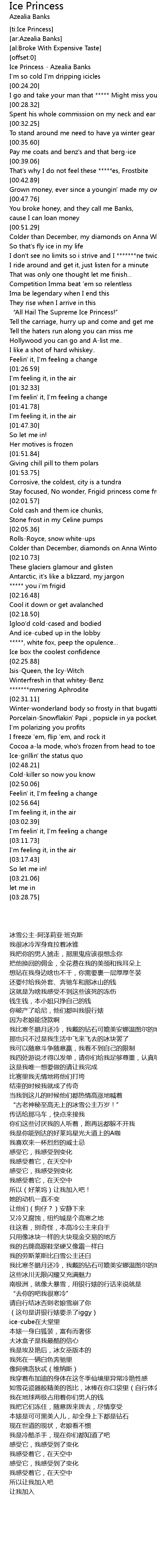 | [00:00.57] | Ice Princess Azealia Banks |