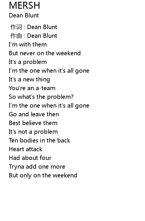 | [00:00.000] | 作词 : Dean Blunt |