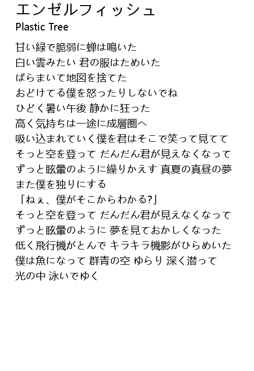 | 歌手 | Plastic Tree |