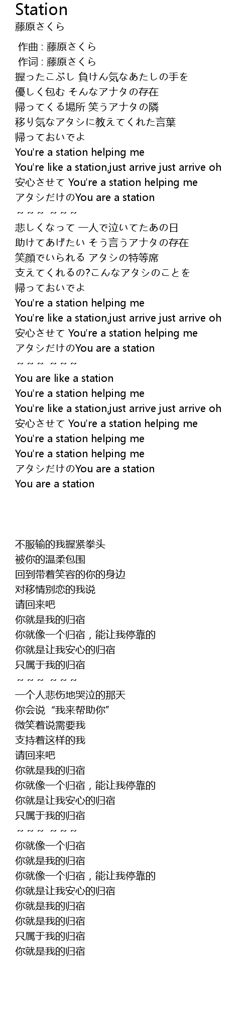| 歌曲 | Station |