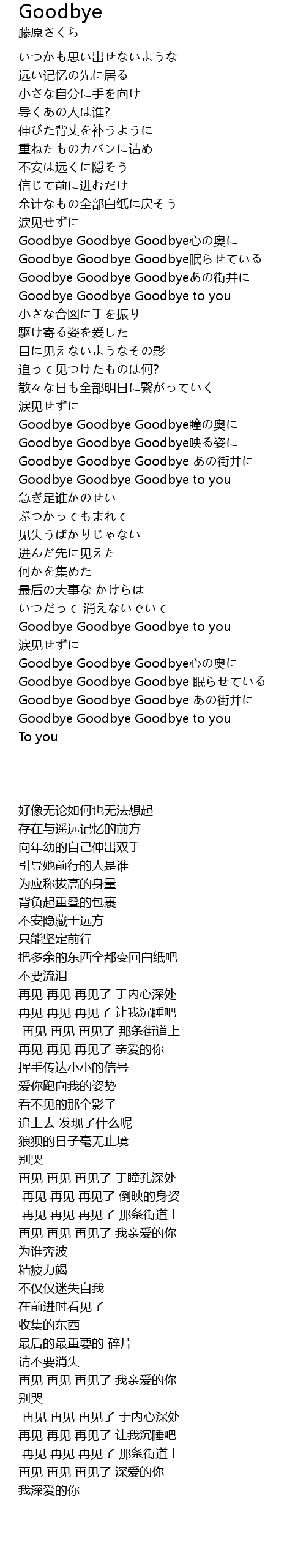 | [01:17.22] | Goodbye Goodbye Goodbye心の奥に |