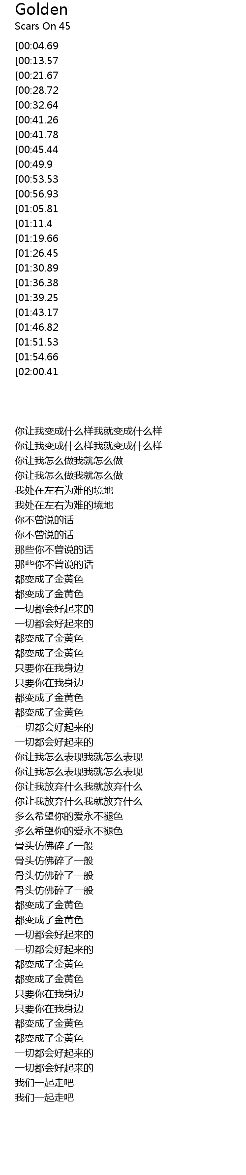 | [00:45.44] | 都变成了金黄色 |