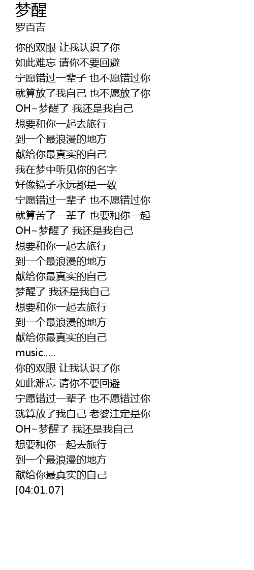 | [00:58.97] | OH~梦醒了 我还是我自己 |
