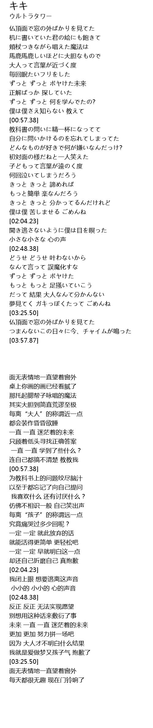 | [01:59.03] | 僕は僕 苦しませる ごめんね |