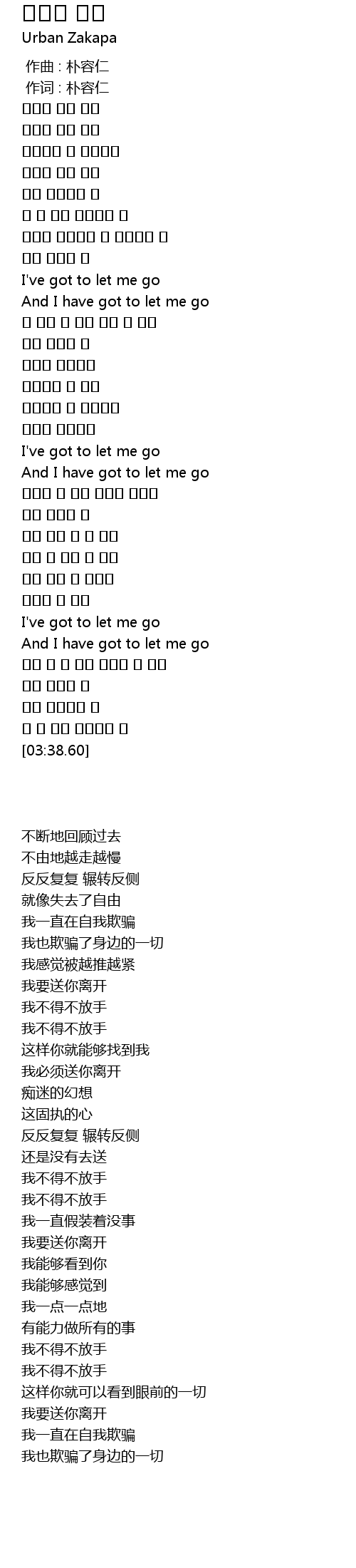 | [00:01.00] | 作词 : 朴容仁 |