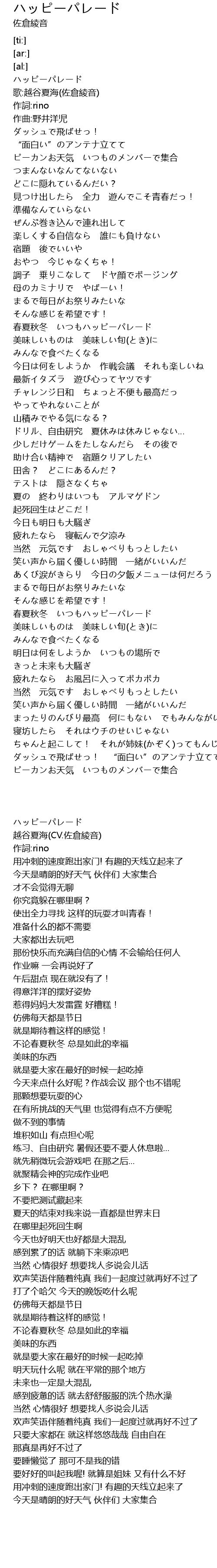 | [02:55.03] | 春夏秋冬 いつもハッピーパレード |