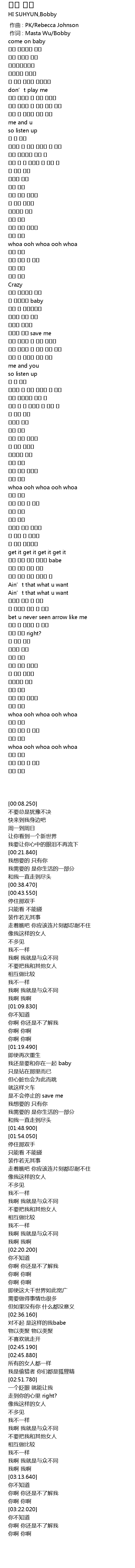 | [00:01.00] | 作词 : Masta Wu/Bobby |