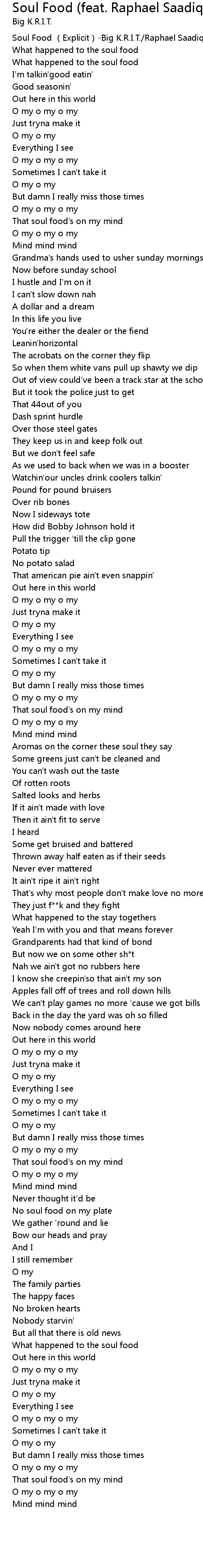 | [00:00.231] | Soul Food (Explicit)-Big K.R.I.T./Raphael Saadiq |