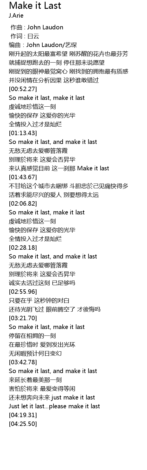 | [00:52.50] | So make it last, make it last |
