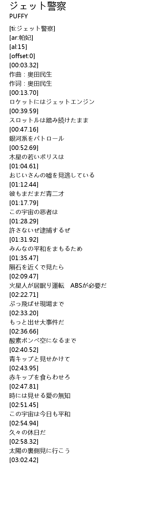 | [01:29.08] | 許さないぜ逮捕するぜ |