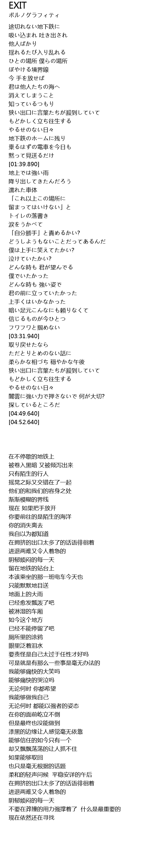 | [04:09.910] | 在拥挤的出口太多了的话语徘徊着 |