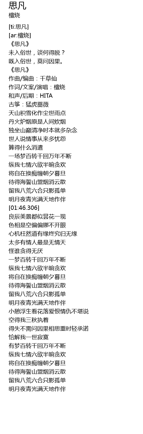 | [00:10.80] | 作词/文案/演唱:檀烧 |