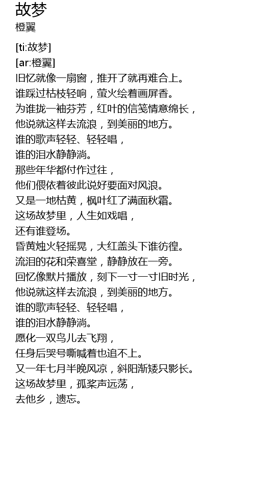 | [00:01.557] | 旧忆就像一扇窗,推开了就再难合上。 |