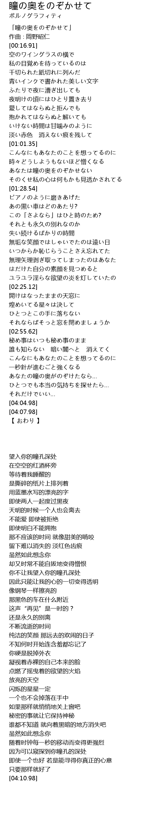 「瞳の奥をのぞかせて」 |