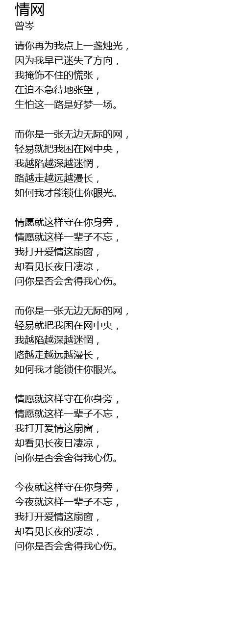 | ér nǐ shì yī zhāng wú biān wú jì de wǎng, | |