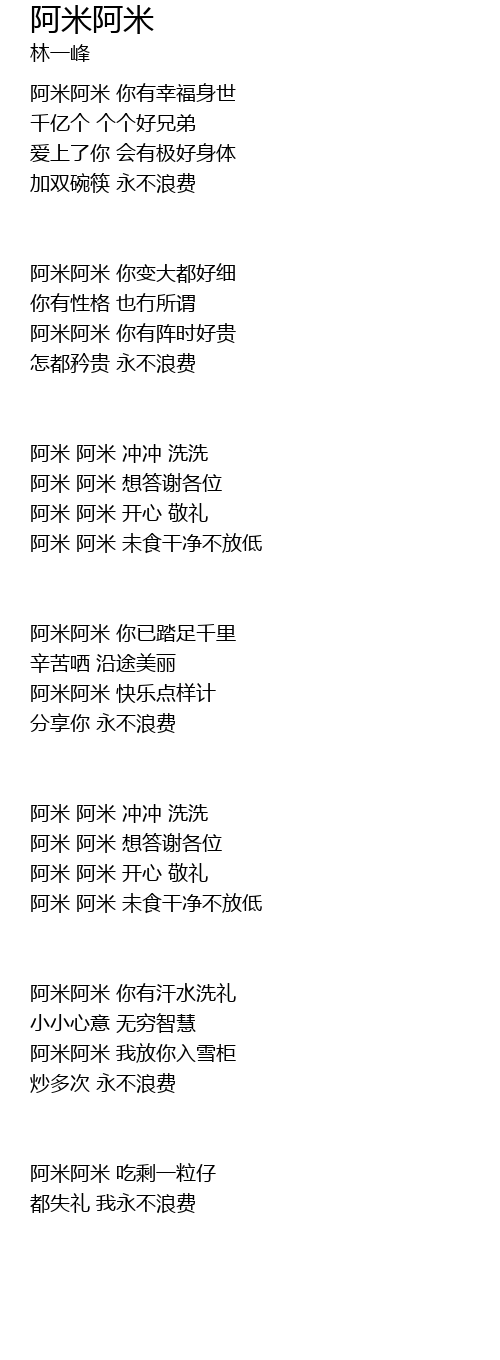 | ā mǐ ā mǐ wèi shí gān jìng bù fàng dī | |