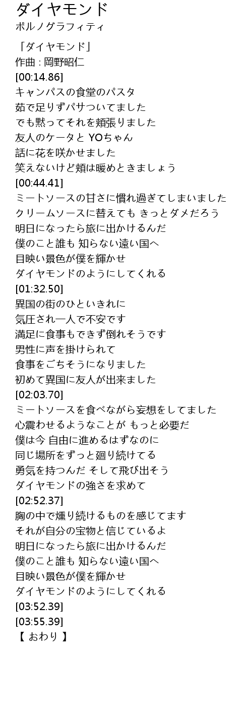 | [02:44.22] | ダイヤモンドの強さを求めて |