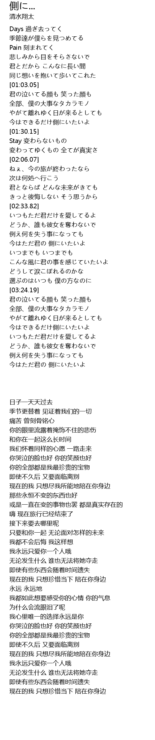 今はただ君の 側にいたいよ |