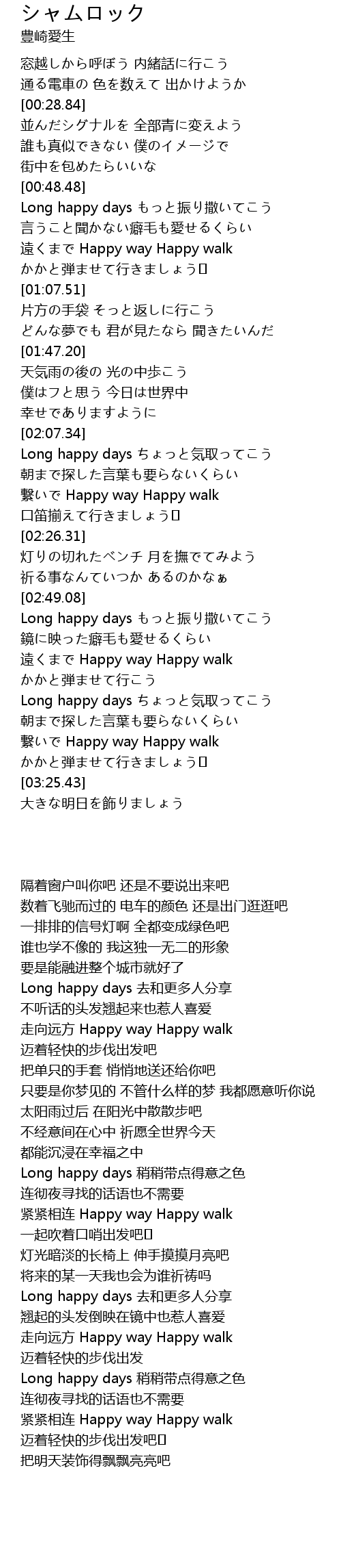 | [03:08.02] | Long happy days ちょっと気取ってこう |