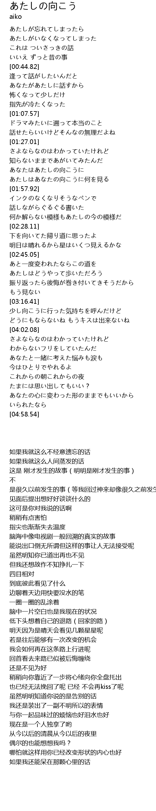 | [01:42.28] | あなたはあたしの向こうに |