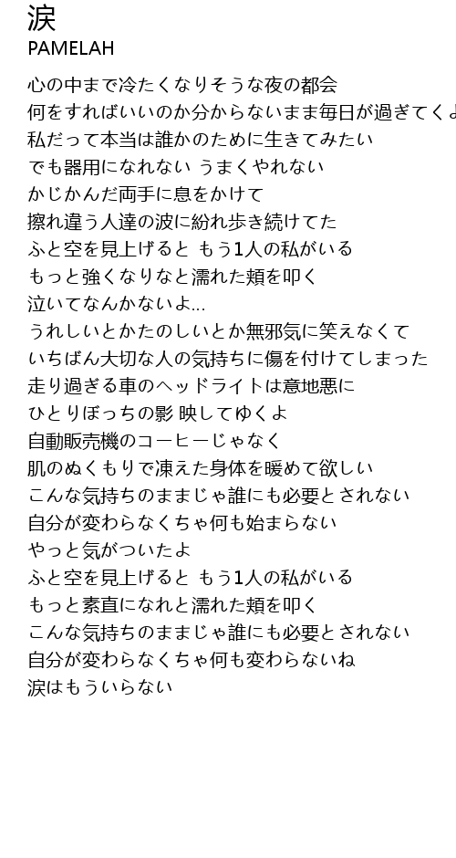 | 歌曲 | 涙 |