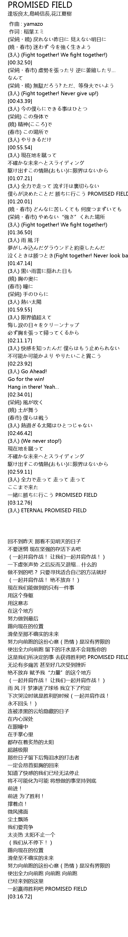 | [03:06.29] | 一起赢得胜利吧 PROMISED FIELD |