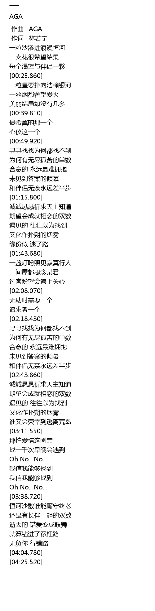 | [00:29.260] | 一粒星要扑向浩翰银河 |