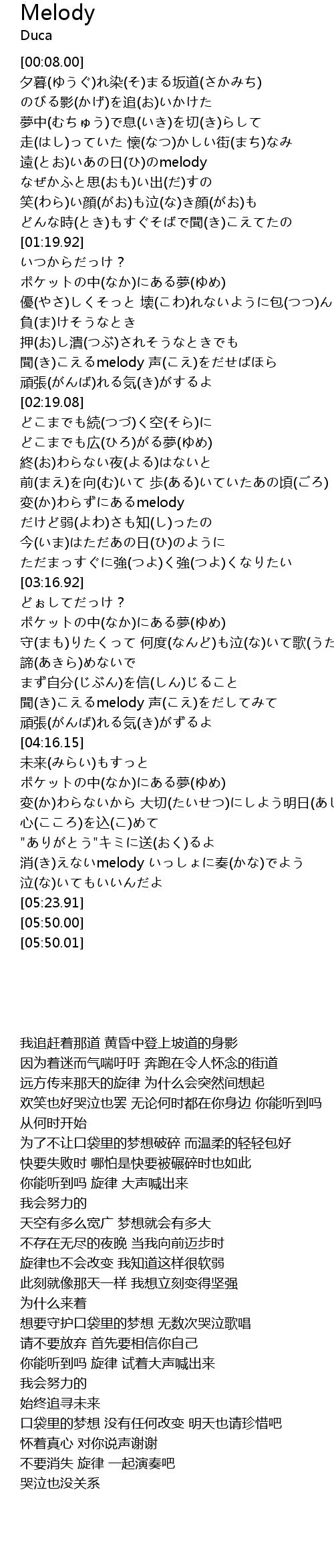 | [05:05.35] | 消(き)えないmelody いっしょに奏(かな)でよう |