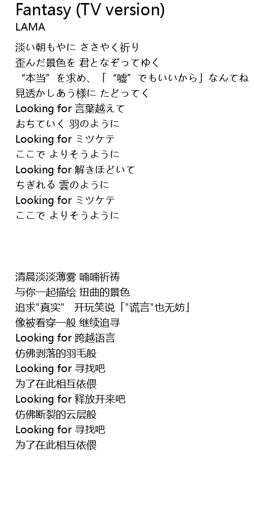 - Fantasy (TV version)